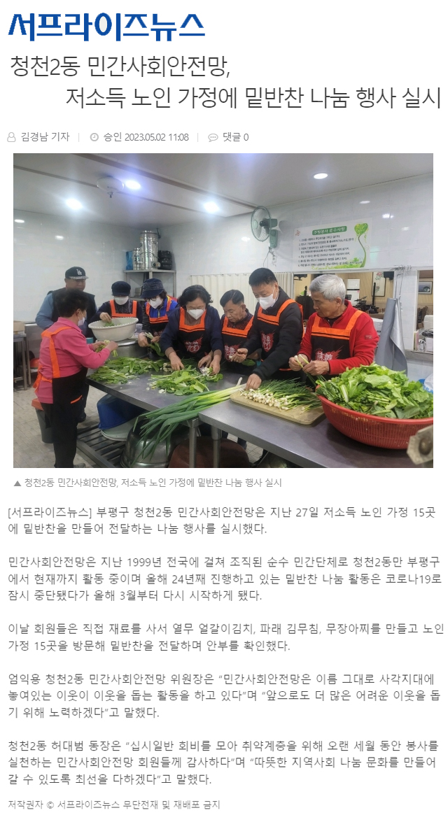 청천2동 민간사회안전망 저소득 노인가정 밑반찬 나눔 행사 5월 봉사활동 페이지 정보 작성자 최고관리자 작성일23-05-04 13:36 조회29,138회 댓글0건 관련링크 본문 청천2동 민간사회안전망 저소득 노인가정 밑반찬 나눔 행사 5월 봉사활동 댓글목록 등록된 댓글이 없습니다. 이전글 다음글 목록