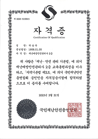 국민재난안전총연합회 재난안전보안관 임명 및 재난예방안전관리사 2급 자격획득 페이지 정보 작성자 최고관리자 작성일23-06-08 09:31 조회31,345회 댓글0건 관련링크 본문 국민재난안전총연합회 재난안전보안관 임명 및 재난예방안전관리사 2급 자격획득 댓글목록 등록된 댓글이 없습니다. 이전글 다음글 목록
