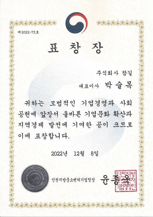인천지방중소벤처기업청장 표창장 수상 및 인천경영포럼 송년의 밤 행사 참석 페이지 정보 작성자 최고관리자 작성일22-12-09 13:10 조회28,575회 댓글0건 관련링크 본문 인천지방중소벤처기업청장 표창장 수상 및 인천경영포럼 송년의 밤 행사 참석 댓글목록 등록된 댓글이 없습니다. 이전글 다음글 목록
