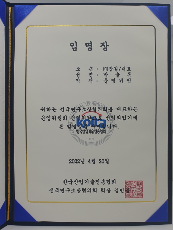 전국연구소장협의회 운영위원회 운영위원 임명 페이지 정보 작성자 최고관리자 작성일22-04-27 13:55 조회31,145회 댓글0건 관련링크 본문 (주)참길 대표님께서 전국연구소장협의회 운영위원회 운영위원으로 임명되셨습니다. 댓글목록 등록된 댓글이 없습니다. 이전글 다음글 목록