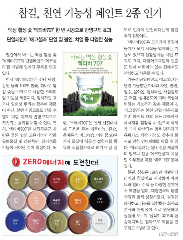 참길, 천연 기능성 페인트 2종 인기 (장식신문 제422호) 페이지 정보 작성자 최고관리자 작성일21-06-30 16:06 조회37,892회 댓글0건 관련링크 본문 참길, 천연 기능성 페인트 2종 인기 (장식신문 제422호에 게재된 내용입니다.) 댓글목록 등록된 댓글이 없습니다. 이전글 다음글 목록
